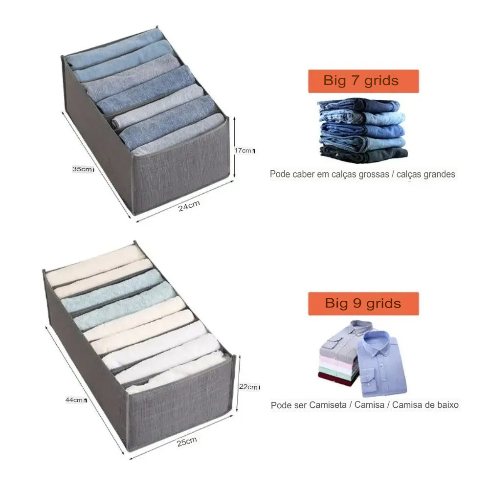 Mantenha seu guarda-roupa sempre arrumado! Ideal para calças jeans, camisetas, roupas íntimas, meias e muito mais. Perfeito para gavetas e prateleiras, com divisórias práticas e de fácil visualização.